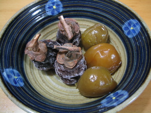 今日のデザートは、干し柿と、梅の蜂蜜漬、いちご。 干柿と梅は、山形の義母さんの手作り。 素朴で美味しい。